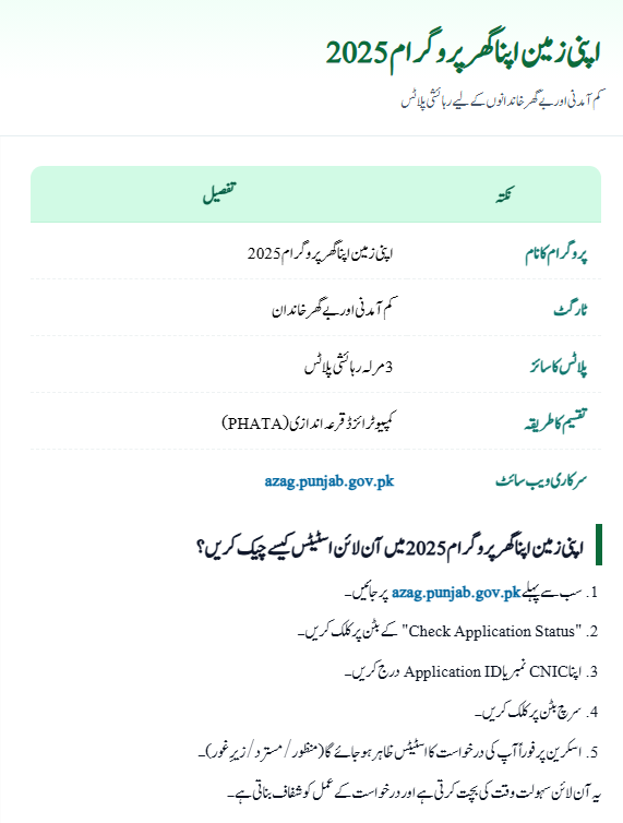 How to Check Apni Zameen Apna Ghar Program 2026 Status Online?