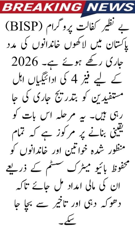 The Benazir Kafalat Program (BISP) is continuing to support millions of families in Pakistan. The Phase 4 payments for 2026 are being released gradually to eligible beneficiaries. This phase focuses on ensuring all approved women and families get their financial aid through secure biometric systems to avoid fraud and delays.