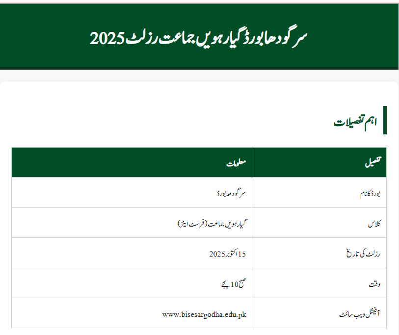 This year, thousands of students appeared in the exams under the Sargodha Board. Now, everyone is waiting for the official result. The announcement day brings both joy and motivation – for some it’s a celebration, while for others it’s a reminder to work harder. That’s why this result day is always a memorable one for families and students alike.