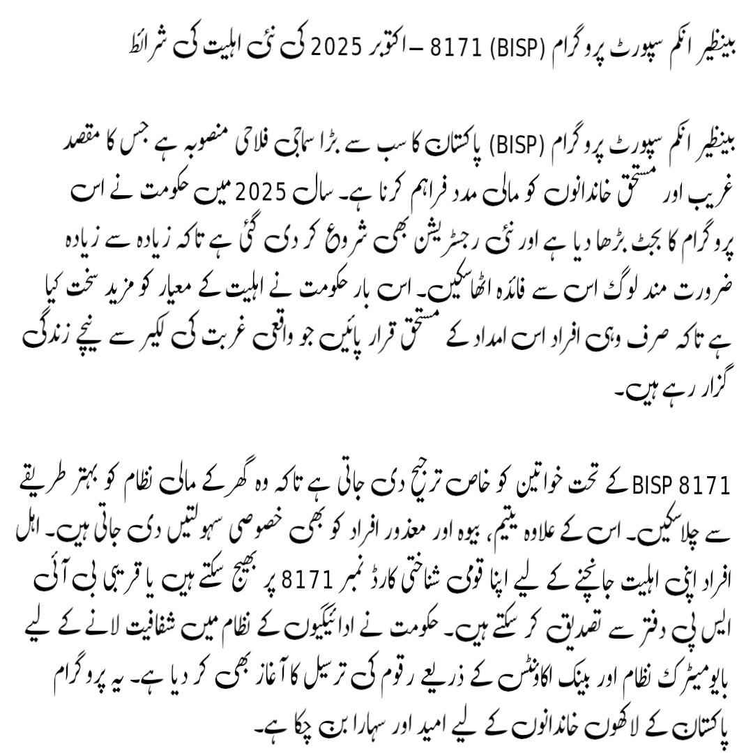 BISP 8171 Eligibility Criteria in October 2025