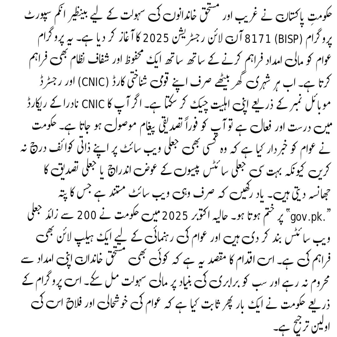 The BISP 8171 Online Registration 2025 is a crucial initiative to help low-income families access financial aid securely. Always register through the official government portal, keep your CNIC updated, and never share personal details on unverified sites. By staying alert, you can ensure smooth and safe registration.