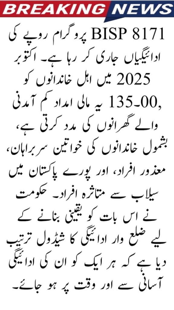 BISP 8171 Payment Schedule October 2025 – District-Wise Payment Plan