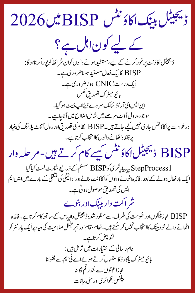 BISP Digital Bank Accounts 2026