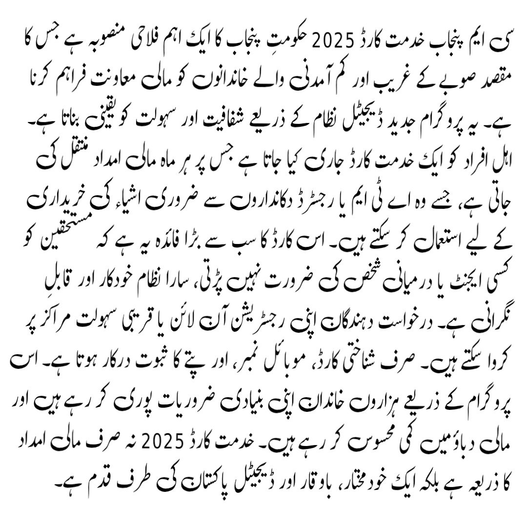 | Program Name | CM Punjab Khidmat Card 2025 |