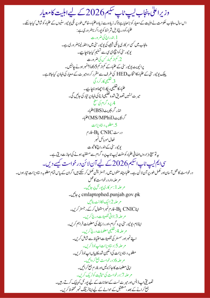 - Official Portal: cmlaptophed.punjab.gov.pk