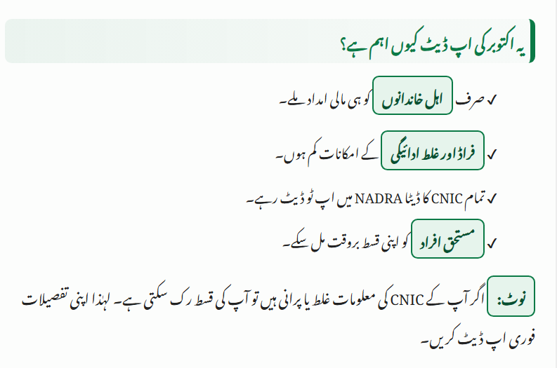 - CNIC Re-Verification: Some families must verify their CNIC details again, especially if data is outdated or incomplete.