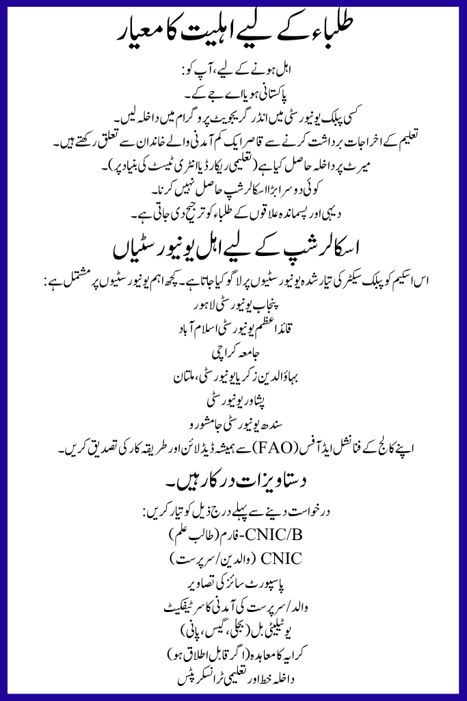 It is only available for scholar students registered in HEC-recognized community colleges and gradation awarding institutes (DAIs).