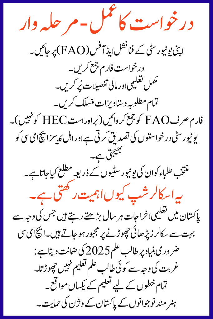 Quick Information – HEC Need Based Scholarship 2025 Apply Now