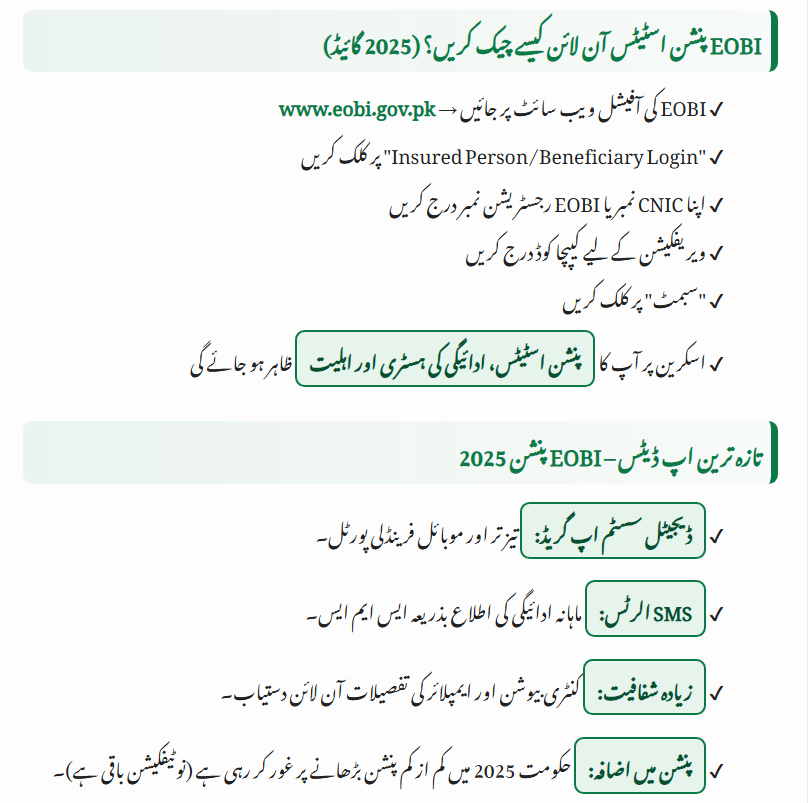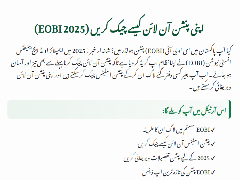 In 2025, EOBI has made the process fully digital, allowing pensioners to check their details with just a few clicks.