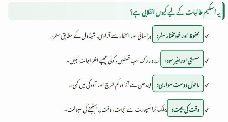 Female students studying in colleges or universities in Punjab who have a valid CNIC/B-Form and learner/permanent license. - Is there any interest on the installment plan?