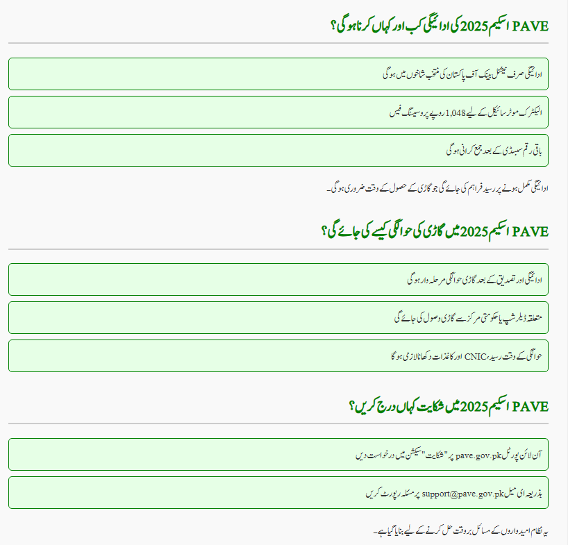 You will receive SMS and email notifications, and you can also check results on pave.gov.pk. - Where do I make the payment for PAVE Scheme 2025?