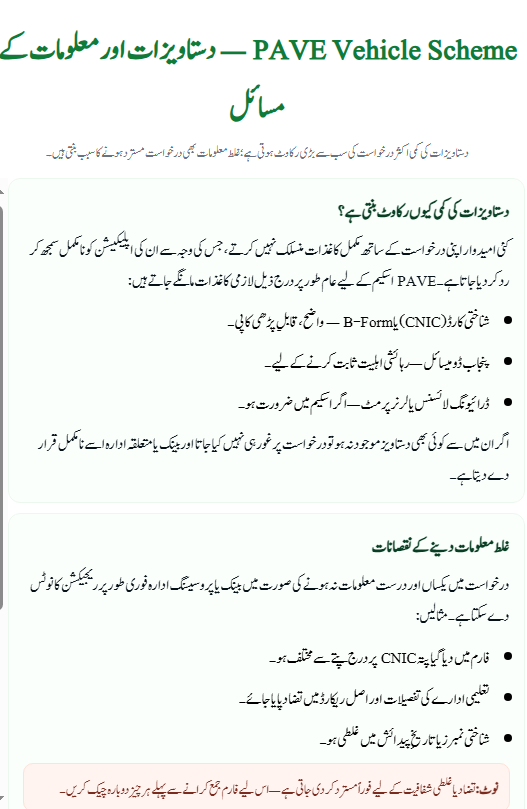 Another major reason for rejection is incomplete documentation. For the PAVE Vehicle Scheme, required documents include: