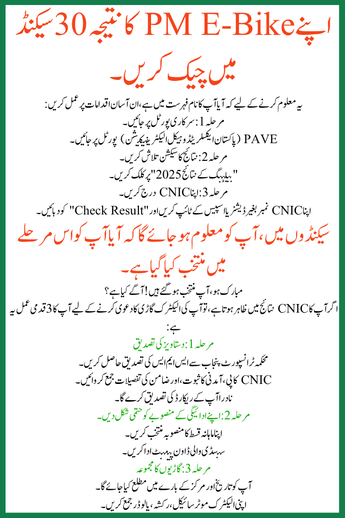 The wait is finally over! The PM E-Bike Scheme balloting result was formally proclaimed on October 2, 2025. Thousands of candidates across Punjab were eagerly waiting to distinguish if they had been designated to receive a subsidized electric bike, rickshaw, or loader below this eco-friendly package. Now, you can easily check your rank online using fair your CNIC number.