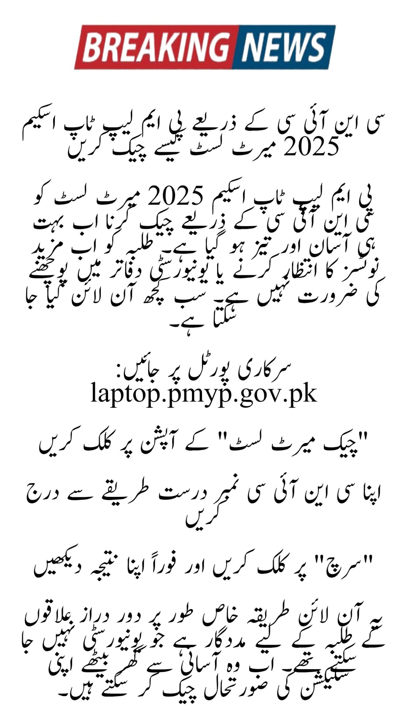 Checking the PM Laptop Scheme 2025 Merit List by CNIC is now very simple and quick. Students no longer need to wait for notices or ask at university offices. Everything can be done online.