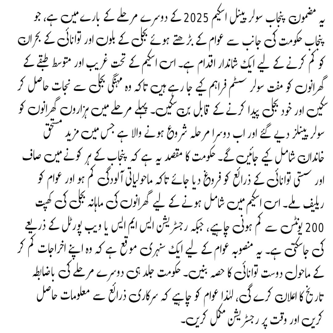 The Punjab Solar Panel Scheme 2025 – Phase 2 is a golden opportunity for families facing high electricity costs. It not only reduces bills but also promotes a cleaner and more sustainable future for Punjab. Stay alert for the government’s official registration announcement and apply as soon as it opens.