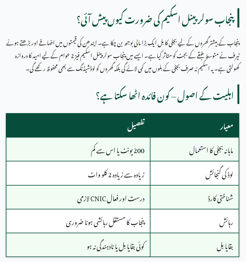 Families living in Punjab who use up to 200 electricity units per month, have valid CNICs, and have no unpaid bills can apply.