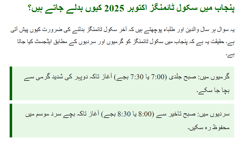 Why Do School Timings Change in Punjab Every October?