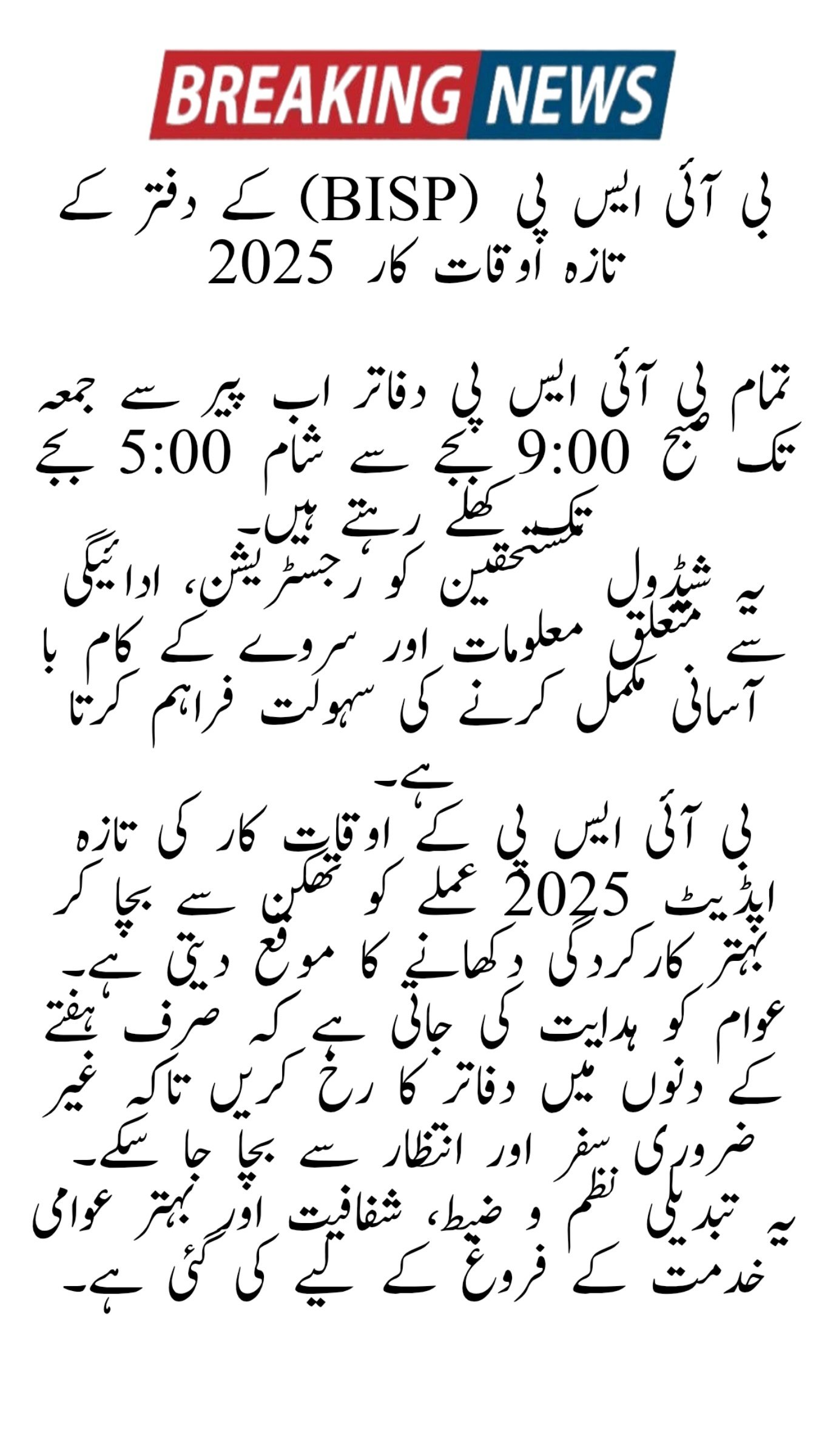 The Punjab Government and BISP authorities decided to close offices on weekends for several important reasons: